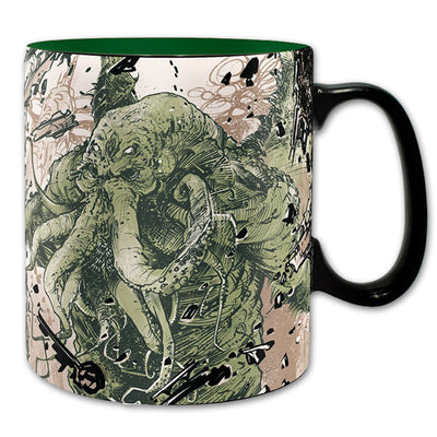 • Mug with a drawing of Cthulhu rising in the sunken city of R’lyeh; Capacity: 460 ml