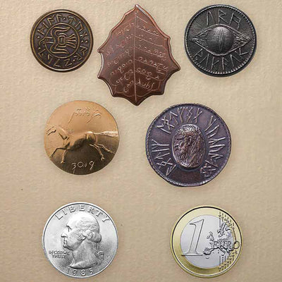 Even though the books and films about the worlds created by J. R. R. Tolkien naturally focus on extraordinary characters and spectacular adventures, the remaining Hobbits, humans, elves, and even the orcs go about their everyday business. After all, someone has to keep the economy alive that makes the conflict between good and evil possible in the first place. And since the rest of Middle-earth doesn't get Lembas and Co. for free at every corner, classic hard cash must be used to shop.