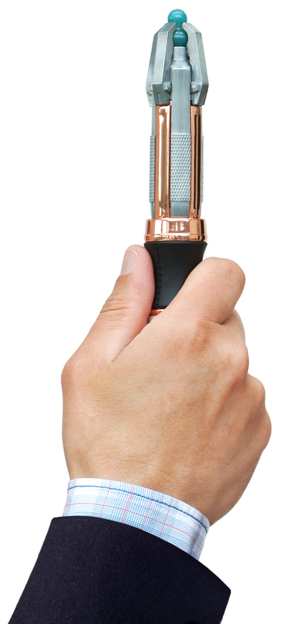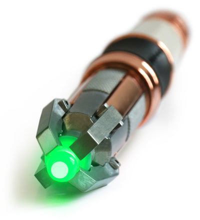 The sonic screwdriver available here was provided to us by the 11th Doctor (Matt Smith) and can be used as a remote control for televisions, Blu-Ray players and other infrared-controlled devices. Just like in the series, it lights up and flashes and even plays matching sounds!