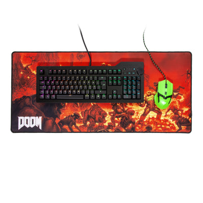 With the XXL Gaming Mousepad "Doom", you can elevate your gaming skills to a similar level as Doomguy's. The mousepad offers ample space of 80 x 35 x 0.4 cm for your keyboard and mouse, and the rubberized underside ensures that your personal arsenal is protected against unwanted slipping. Now you just have to take a cue from the depicted scene and send demons back to Hell to your heart's content!