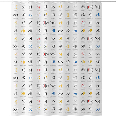 • Geekiger Duschvorhang mit aufgedruckten Chat-Smileys.