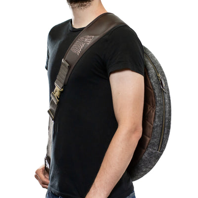 This high-quality rucksack is a detailed replica of a shield from the northernmost of the great houses. Hidden behind a zipper you will find two inner compartmentsand the "inside" of the shield is padded to ensure maximum comfort even on long marches. Speaking of comfort: the carrying strap of the shield can be conveniently opened using a buckle, so you don't have to awkwardly slip it over your head in dangerous situations. The shield is made of plastic rather than metal so that you don't break it on the way to work ;)