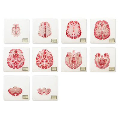 Whether you want to become Frankenstein 2.0, work in pathology or are simply looking for spooky accessories for your next Halloween party, the brain sample coasters are guaranteed to go down well in your home. On the 10 glass coasters, which are perfectly secured against slipping thanks to their rubber feet, you can admire slice plastinates which, when stacked on top of each other, create a three-dimensional model of a brain. The specimens are neatly labeled and numbered so that you can always store the coasters in the right order. After all, mad scientists are only mad, not insane!