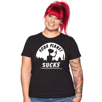 If you've always wondered what an alien would think of Earth if it accidentally landed here – the Your planet sucks T-shirt provides the answer.