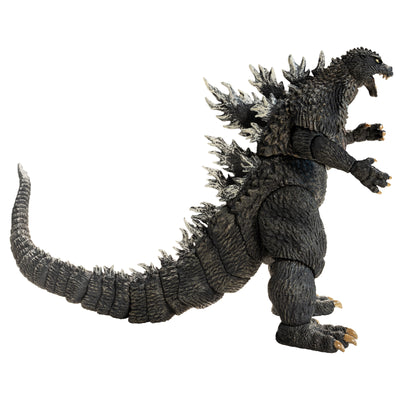 The officially licensed Godzilla Classic 2003 Action Figure is modeled after the famous Japanese film monster from “Godzilla Tokyo SOS”, in which the primordial giant has to compete against his robotic counterpart Kiryu. Compared to the Kaiju films of the first and second era, this movable figure has improved proportions and features larger and sharper dorsal plates as well as film-accurate details on the chest. The action figure comes in a foldable display packaging.
