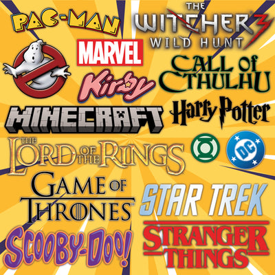 Darunter findest du Merchandise aus Stranger Things, Game of Thrones, DC-Comics, Marvel, Witcher, Der Herr der Ringe, Cthulhu, Star Trek, Kirby, Ghostbusters, Minecraft, Nerf, Dragonball, Among Us und anderen Franchises!
