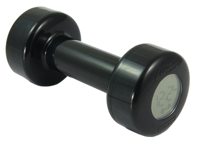 The clock weighs about 0.7kg and features an LCD display of the time (with 12-hour mode and AM/PM display for morning and afternoon) and, of course, an alarm function. The LCD display has a backlight that turns on when the dumbbell is lifted. The alarm can only be turned off by lifting the dumbbell 30 times, with the remaining number of lifts needed shown on the display. Alternatively, the clock can be switched to a normal mode, where lifting it once is enough to turn off the alarm.