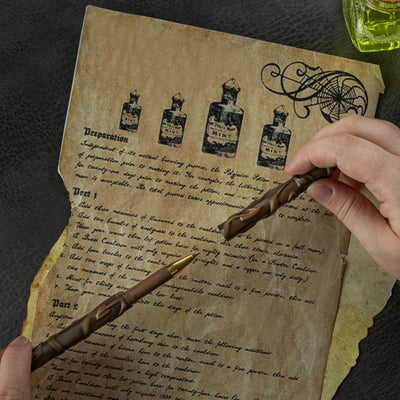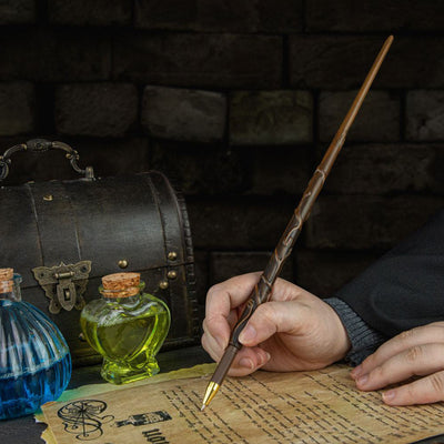 With this Harry Potter Wand Pen, you can save quite a bit of time (and ink stains) in your next exam in Potions, Defense Against the Dark Arts, or History of Magic – and you'd also have your wand ready in case of a sudden Death Eater attack! The pen can be closed with a cap that is modeled after the wand's handle.