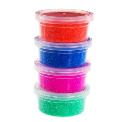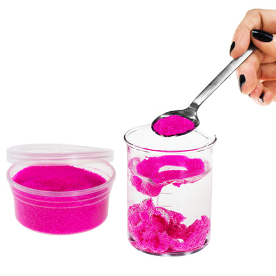 Through a special treatment of the sand grains, their surface repels water. If you throw a handful of sand into a container of water, you get one or more clumps. You can shape these sand clumps underwater. Try letting the sand trickle into the water faster or slower, and you get, for example, colorful sand sausages or many small balls. :) As soon as you bring these shapes back to the air with your hand or a spoon, the sand is immediately bone dry again! So you can't bring an underwater sandcastle to land; the sand immediately becomes loose and disintegrates.