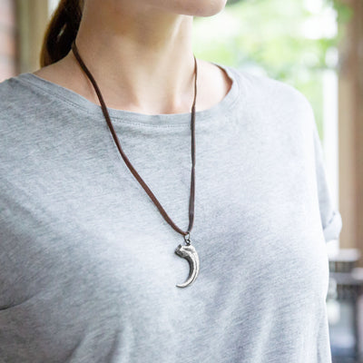 • Necklace in the shape of a Velociraptor claw from Jurassic Park; Lets you carry a part of the clever dinosaur species as a trophy; Includes faux leather strap (55 cm long); Officially licensed product