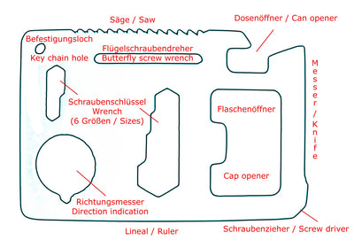 This ingenious tool offers 9 functions, but is still only the size of a credit card, so you can easily store it in your wallet, for example. It is made entirely of stainless steel and is therefore very robust. Specifically, it contains the following tools: