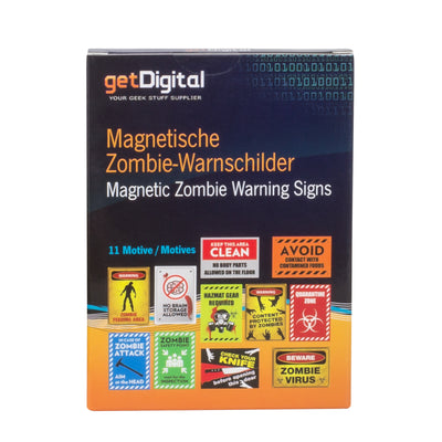 Wie der Name vermuten lässt, kannst Du die Schilder an jeder magnetischen Oberfläche befestigen, da schwere Klebeflaschen Dich nur verlangsamen würden. Und das kommt enorm ungelegen, wenn Du gerade von wankenden Kadavern verfolgt wirst. In dem Set sind 11 verschiedene Motive enthalten, sodass Du auf alle möglichen Situationen vorbereitet bist und möglichst viele Menschen warnen kannst. Neben Warnschildern, die auf verschiedene Arten vor Zombies warnen, findest Du auch praktische Tipps wie "Aim for the Head" oder "Check your knife". Aber denk dran, meistens sind die Menschen noch viel gefährlicher als die Zombies. Die sind ja immerhin ehrlich und lassen Dich wissen, dass sie Dein Hirn wollen...