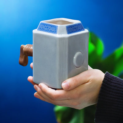 Start the day with a strong sip of coffee (or optionally nectar and ambrosia) from this mug, which is modeled after Thor's war hammer Mjölnir - provided, of course, that you are truly worthy.