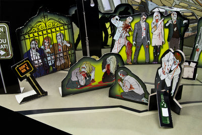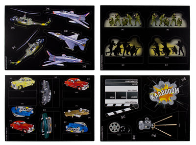 The various sets on the themes of Zombie and Monster each contain over 50 parts, making it child's play to set up an entire film set. The props made of sturdy cardboard can then be animated using thin wooden sticks (included in the set). But of course, you can also develop a stop-motion film ;)