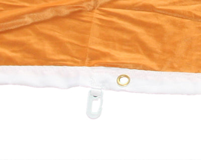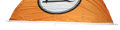 Made of polyester and equipped with three plastic hooks on the left edge and three metal eyelets for easy attachment. The print shows through the flag, so it appears mirrored from one side. The flag is suitable for outdoor use. The delivery does not include a flagpole, but you can easily make one yourself; attachment is easy with the plastic hooks or the eyelets.