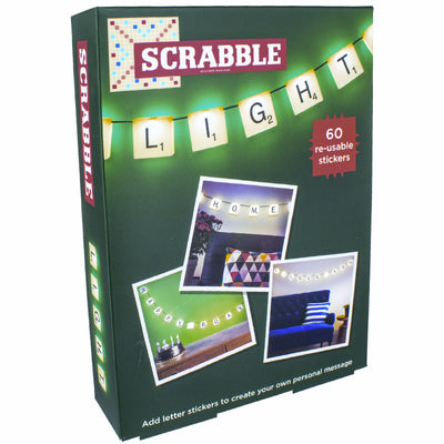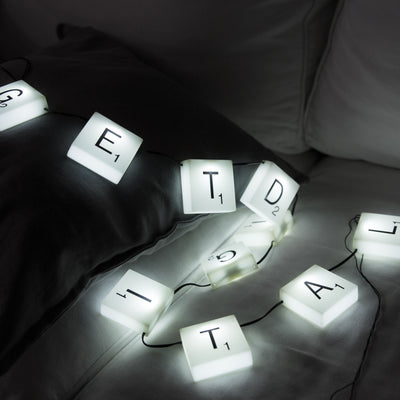 The only thing missing is the right place for the Scrabble light chain, which is approx. 180 cm long in total. Then there's another 200 cm of cable to reach the nearest socket. The tiles contain LEDs, so they are not energy guzzlers.