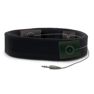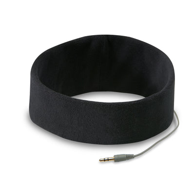 • Flat, padded headphones integrated into a fleece headband