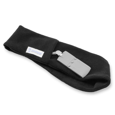 The very flat earpieces sit in a soft, cozy fleece headband and can be adjusted in position. This allows you to position them exactly where your ears are. You can see an illustration of how the headphones sit in the headband in one of the pictures on the left. Unlike conventional headphones, the Sleep Phones cannot simply fall out of your ears when you turn around.