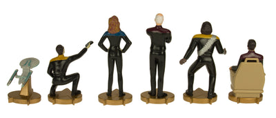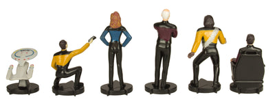 Fighting over the cooler team arises in this Star Trek Chess because the pieces (except for the pawns) exist on both sides. You can tell them apart by their uniforms and the different colored base. The fact that characters can exist twice in the same place at the same time has been demonstrated in numerous Star Trek parallel universe episodes.