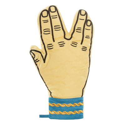 Besides his coolly logical but somehow warm demeanor, it is probably the Vulcan salute that has become a symbol for Star Trek. And with the Star Trek Spock Oven Mitt, you can not only show your connection to your favorite franchise but also give your cake, casserole, bread, or rolls a friendly intergalactic greeting.