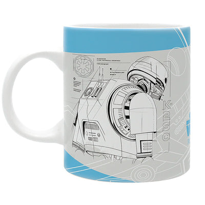 If you want to know how Cassian Andor's loyal companion is built, you should consult the Rogue One K-2SO mug. On this fully printed ceramic mug, you will find a schematic representation of the gentle giant, which can also show you how to disable identical droids of the Empire. You don't always need the Force; sometimes a powerful processor and a witty remark (or a loudspeaker) on your lips can help. ;)