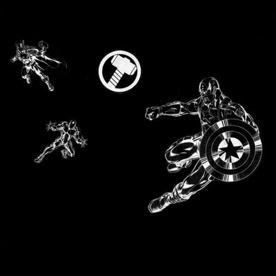 With the 16 Marvel The Avengers gadget stickers included in this set, you can prepare your smartphone, tablet or laptop for the battle against Ultron, Loki and all other imaginable villains. In addition to Iron Man, Thor, Captain America and the Hulk in various poses, you will also find the emblems of the four heroes on the arches. Three-dimensional versions of Thor's hammer, Captain America's shield and Hulk's fist round off the package and make it look as if your gadgets have taken a beating in battle (visually, of course. Tony Stark has guaranteed that the gadgets will continue to work perfectly). Some of the waterproof and removable stickers are printed with black outlines, others with white. You can use them to decorate light and dark gadgets alike. You can find a few examples in the product images above.