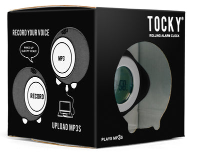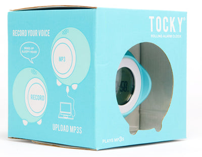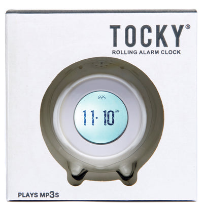 Like Clocky, Tocky only lets you snooze once and then rolls away while it plays the alarm. So you have no choice but to get up.