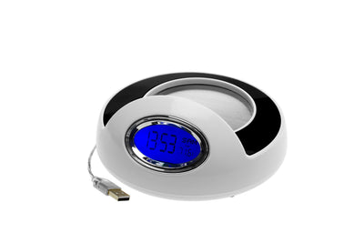 To avoid losing the time even when the computer is turned off, the USB cup warmer has an AG13 button battery built in, which is included in the delivery. The cup warmer reaches up to 60 degrees Celsius depending on the power supply of the USB port. The red control light indicates whether the heating plate is switched on. To improve the power supply, a 5V power adapter (not included) can be connected.