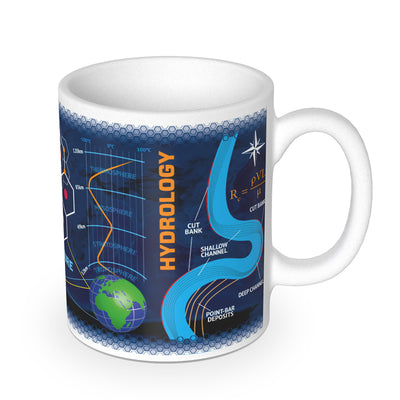 It doesn't matter whether you discovered the wonders of geography years ago or have just discovered this field: The Geography science mug will be a loyal companion from now on. In addition to the obvious statement "I <3 Geography", this drinking vessel also has some of the things that make geography so exciting: Using the Reynolds number, for example, you can calculate whether the caffeine flow is sedimenting or eroding or when laminar or turbulent flow is present. Christaller's theory of central places will explain to you why the new mega supermarket is to be built right behind your house, the division of the atmospheric layers is not only interesting for amateur pilots and somehow the energy balance of the earth can certainly be converted to caffeine...
