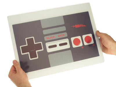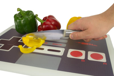 Este tablero de corte se parece a un controlador de juego clásico: si este no es un incentivo para lidiar con él, para lidiar con pimientos de nivelado coloridos o zanahorias de vida extra ... e imagine lo genial que es hacer hongos buenos para Un cuchillo en lugar de simplemente saltar sobre él (que por supuesto, por supuesto, también puede hacerlo).