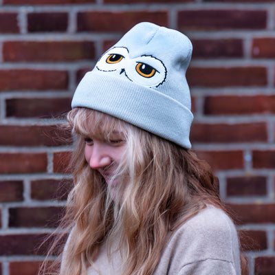 • Helles Beanie mit dem Gesicht der Eule Hedwig aus Harry Potter