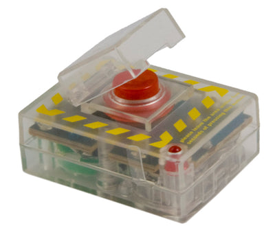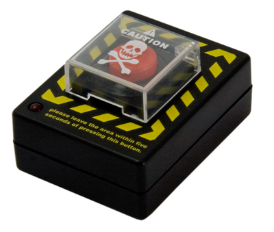 Después de quitar la tapa protectora y presionar el mini botón de autodestrucción, se escucha un sonido de advertencia que se acelera durante 5 segundos, seguido de un sonido de explosión. Lamentablemente, tu colega o tu computadora no explotan realmente, pero la idea no está nada mal.