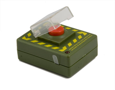 El mini botón de autodestrucción tiene unas dimensiones de 3x4x2cm y se entrega con tres opciones de montaje diferentes: puedes fijarlo a la pared con el soporte incluido, colgarlo de tu teléfono con la correa para móvil o usarlo como llavero. El color del modelo entregado varía entre las variantes mostradas. Necesita dos pilas LR44, que se incluyen.