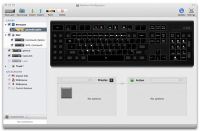 El teclado Optimus Maximus cuenta con 113 pantallas OLED, cada una de las cuales puede ser controlada individualmente, de modo que se pueden mostrar fácilmente diferentes diseños en el teclado (sin embargo, lamentablemente falta una tecla en el bloque principal para el diseño estándar alemán). Las posibilidades de aplicación son, por supuesto, enormes: además de diferentes idiomas de teclado, se pueden mostrar varios símbolos en las teclas según el programa que se esté utilizando.