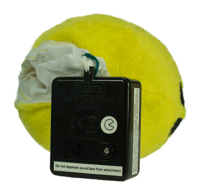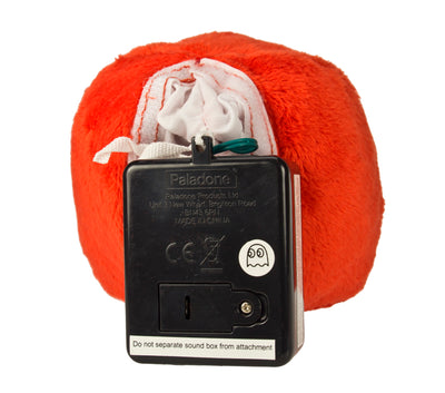 Ahora puede elegir entre Pac-Man personalmente y los dos fantasmas de tinta (azul claro) y Blinky (rojo). Los tres no solo son tiernos suaves, sino que también dan a conocer los tonos del juego cuando los presionas suavemente sobre sus cabezas. (Te gusta particularmente eso). Dentro de tu cuerpo suave, una pequeña caja de batería está oculta detrás de un sujetador de velcro.