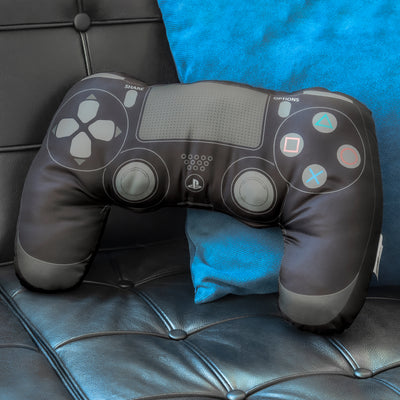 El oficialmente licenciado Almohada de controlador de PlayStation Tiene la forma inconfundible de un controlador de PlayStation. Es ópticamente que PlayStation Wireless Dualhock 4-Controller Reembolsado, detallado, incluidos todos los botones, incluidos palos analógicos y panel táctil moderno. La almohada no solo es adecuada como una decoración perfecta para los apartamentos nerd, sino que también puede servir como soporte para el cuello debido a su forma, de modo que como un múltiple gambler no obtienes un cuello rígido junto a los ojos cuadrados y los dedos estrechos. ;)