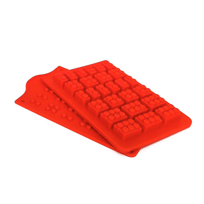 En el kit también encontrará una forma de silicona con la que puede hacer los bloques de construcción disfrutados, también una guía multilingüe y galletas de chocolate finamente derretidas en blanco, marrón y negro. Ahora todo lo que tiene que hacer es derretir el chocolate en un baño de agua, llénelo en el molde y espere.