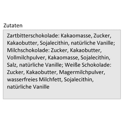 De modo que el chocolate se pone en la última esquina y cada perilla de la forma, recomendamos golpear la forma llena hasta que la superficie esté suave. Entonces el aire escapa y no hay cavidades. Esto es particularmente importante si usa chocolate más grueso y fluido, como los amargos. Por supuesto, no está fijo en las variedades suministradas, también puede poner su chocolate favorito en el molde.