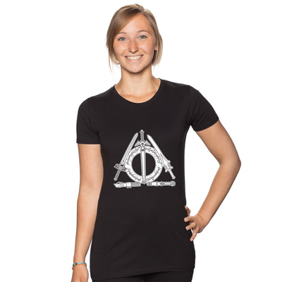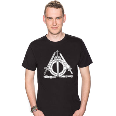 Convenientemente, hemos desarrollado una especie de código secreto que puede ayudarte con eso. Si llevas la camiseta de Espadas de la Muerte en público y alguien te habla de ella, sabrás en poco tiempo sobre tu interlocutor: quien reconozca más de tres de los símbolos es un verdadero nerd. ¡Quien pueda enumerar los siete es al menos tan loco como tú!