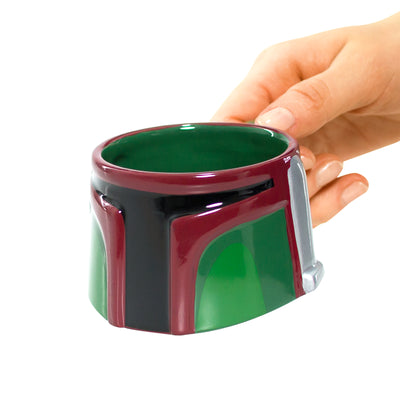 El rasgo más distintivo del cazarrecompensas es sin duda su armadura verde, cuyo casco sirvió de modelo para el Star Wars Boba Fett Taza 3D. Nada te prepara mejor para un día lleno de asesinatos por encargo, secuestros y caos que un gran sorbo de café. Pero recuerda: ¡Siempre mantén una buena distancia del Sarlacc! ;)