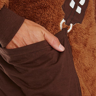 Viene mucho más auténtico y también increíblemente cómodo Star Wars Jumpsuit Chewbacca por lo tanto. Este acogedor y suave salón de campanilla te transforma en el secreto, el favorito de muchos fanáticos de Star Wars. Además del pelaje, para el cual no se vieron afectados, el mono también se deleita con su bolsillo lateral colgado en el cinturón de celda de energía, en el que puede guardar bocadillos, el control remoto u otras cosas útiles. Para que pueda subir fácilmente a la general, hay una cremallera con una gran ayuda de trenes de Star Wars en el frente, que podría cerrar en Hoth con dedos de color azul. ;)
