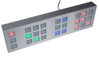 Para hacer la visualización aún más interesante, incluso cuando la hora se mantiene igual, diferentes cuadrados siguen brillando, aunque el número total de cuadrados naturalmente solo cambia cada minuto. La velocidad a la que los cuadrados iluminados cambian se puede ajustar entre una vez por segundo, cada 4 segundos y una vez por minuto. Especialmente con la primera configuración, los visitantes suelen tomar el reloj como un juego de luces abstracto y menos como un reloj :)