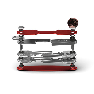 Termine con límites de llave voluminosos, muslos tercos, bolsillos de pantalón rotos y masas de llave enredada. Llave milagrosa Organiza tus llaves, las mantiene juntas y, gracias a su formato de navaja de bolsillo, es perfecto para tu bolsillo. Atrás quedaron los momentos en los que tienes que buscar la tecla correcta para siempre: simplemente puedes plegar cada llave si es necesario. El ensamblaje de las teclas milagrosas solo toma unos segundos, todo lo que necesitas es una moneda de 1 centavo. ¡Y incluso está incluido! ;)