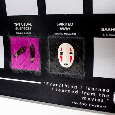 Et c'est exactement ce que tu peux faire avec l'„Affiche à gratter de 100 films désormais! Considère cette affiche comme une liste de tes réalisations personnelles dans le domaine du visionnage de films: Si tu as vu l'un des 100 films sur cette affiche, tu peux gratter le champ d'art correspondant avec une pièce de monnaie.