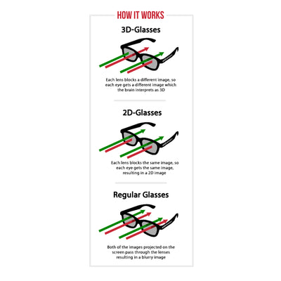 Malgré leur légèreté, les lunettes 2D sont de très grande qualité et avec une polarisation de 99,9%, elles garantissent une vision claire comme du cristal. Même les myopes ne doivent pas se priver de cet avantage : Tu peux les placer confortablement par-dessus tes propres lunettes.