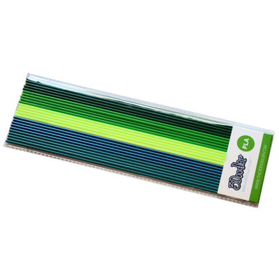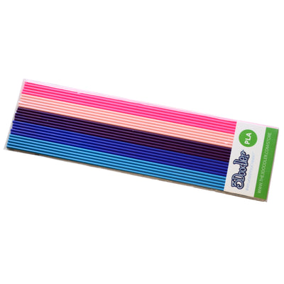 PLA (polylactide) est plus dur que l'ABS et convient donc mieux aux longs traits libres sans support, ainsi qu'au doodling sur des surfaces lisses comme le métal ou le verre. Le PLA est légèrement transparent.