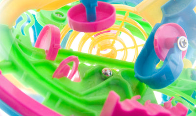 Contrairement aux labyrinthes bidimensionnels ordinaires, le labyrinthe de l'Addict-A-Ball se trouve dans un espace tridimensionnel. En effet, une sorte de montagnes russes pour billes est intégrée dans une balle transparente. Il y a de nombreux embranchements et des passages imaginatifs à travers lesquels vous devez manœuvrer la bille. Pour cela, vous pouvez tourner la balle dans toutes les directions possibles.