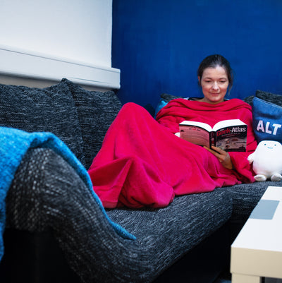 La couverture à manches résout maintenant ce problème avec une solution étonnamment simple : deux grandes manches sont cousues sur les côtés de la couverture, à travers lesquelles tu peux facilement sortir tes bras, de sorte qu'ils restent bien au chaud tout en étant disponibles pour toutes les activités.