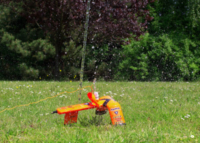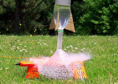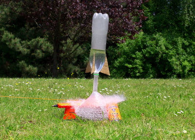 Le principe de fonctionnement de l'Aquapod est très simple : à l'aide d'une pompe à air normale (non incluse), la pression est créée dans une bouteille d'eau à moitié remplie (de préférence de 2 litres). Dès que l'eau est libérée par la soupape de sécurité, tu prends une distance de sécurité de 3 à 5 mètres, tu tires fortement sur la corde de déclenchement et ta fusée à eau s'élèvera de 10 à 30 mètres vers le ciel !