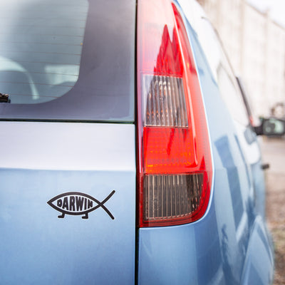Enfin, tu peux aussi avoir un autocollant nerd à l'arrière de ta voiture ! Et contrairement aux autocollants sur d'autres voitures, l'autocollant Darwin ne te dérange pas avec de mauvaises blagues ou des familles de bonshommes allumettes.